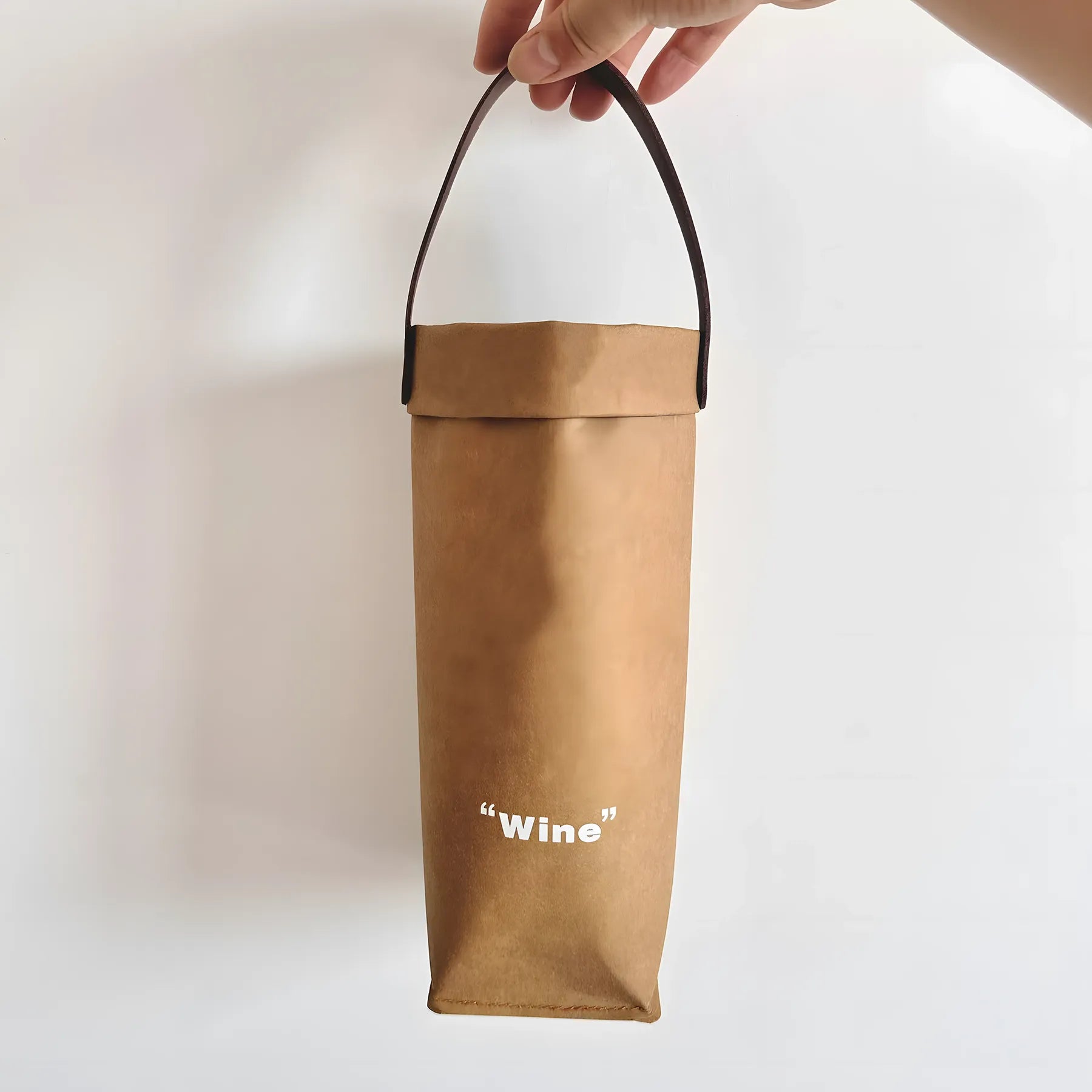 Eco-friendly custom kraft paper wine bag. Sturdy, recyclable, and ideal for small businesses seeking sustainable, branded packaging solutions with low minimum order from LeafPackage.
