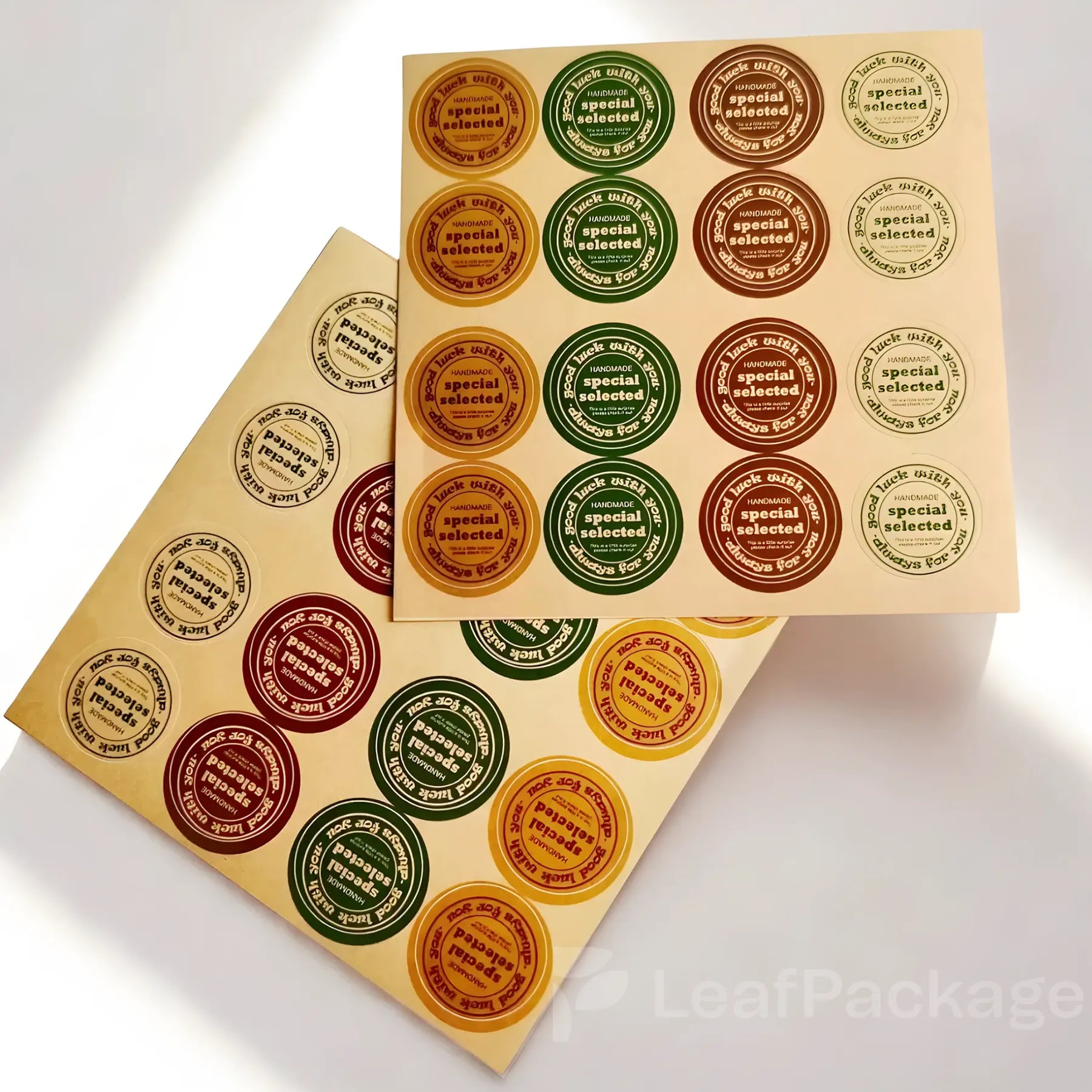 Enhance your packaging with LeafPackage custom kraft paper sealing stickers. Perfect for decorating or sealing products, these eco-friendly kraft paper stickers add a warm, artisanal touch while showcasing your brand with subtle elegance. Small businesses can leave a memorable impression with every package.
