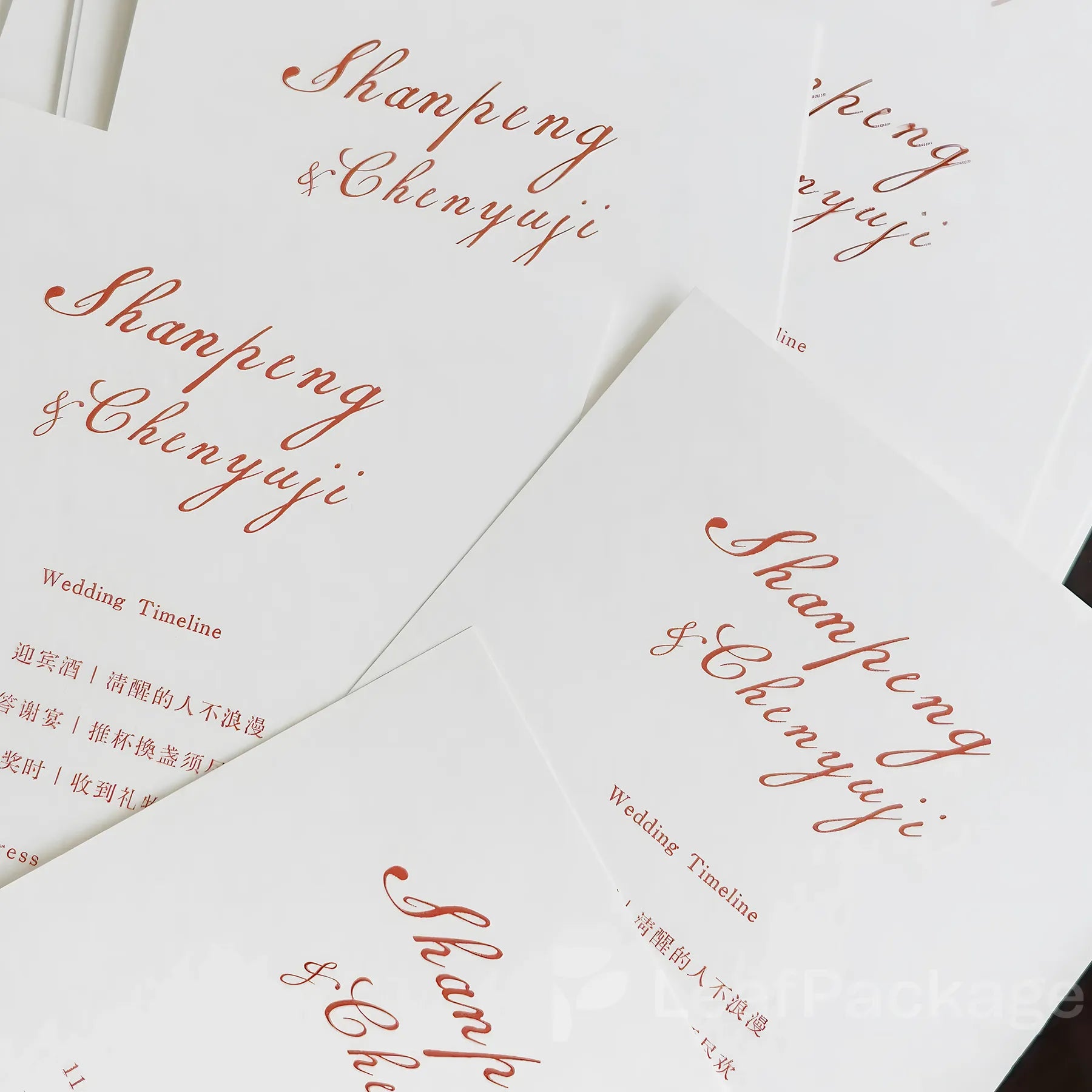 LeafPackage’s custom printed wedding invitations are designed to set the tone for your special day. Made from premium 300gsm coated paper, each card delivers rich colors, crisp details, and a luxurious hand-feel. Available in flat formats, these invitations complement any wedding theme—from classic elegance to modern minimalism—bringing your love story to life before the celebration even begins.