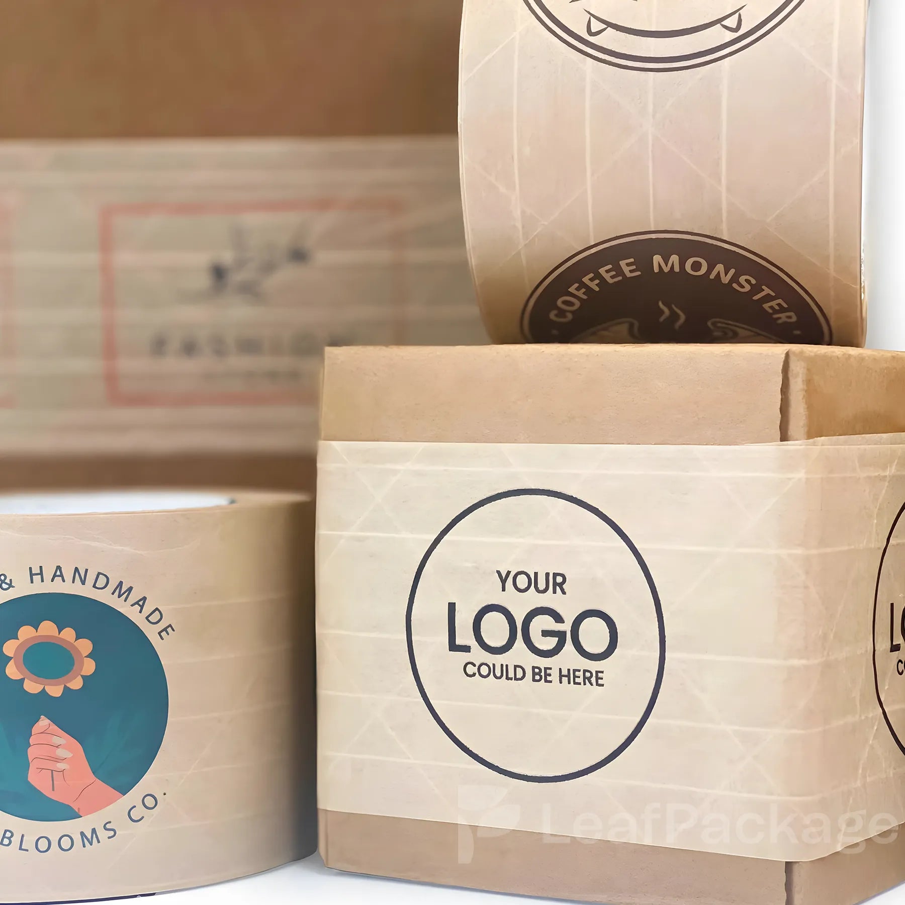 LeafPackage reinforced water-activated tape is made from recyclable kraft paper with fiberglass fibers for extra strength. Its water-activated adhesive bonds instantly, making it perfect for sealing boxes during shipping. Custom logo printing and small-batch customization let small businesses create professional, eco-friendly, and memorable packaging.
