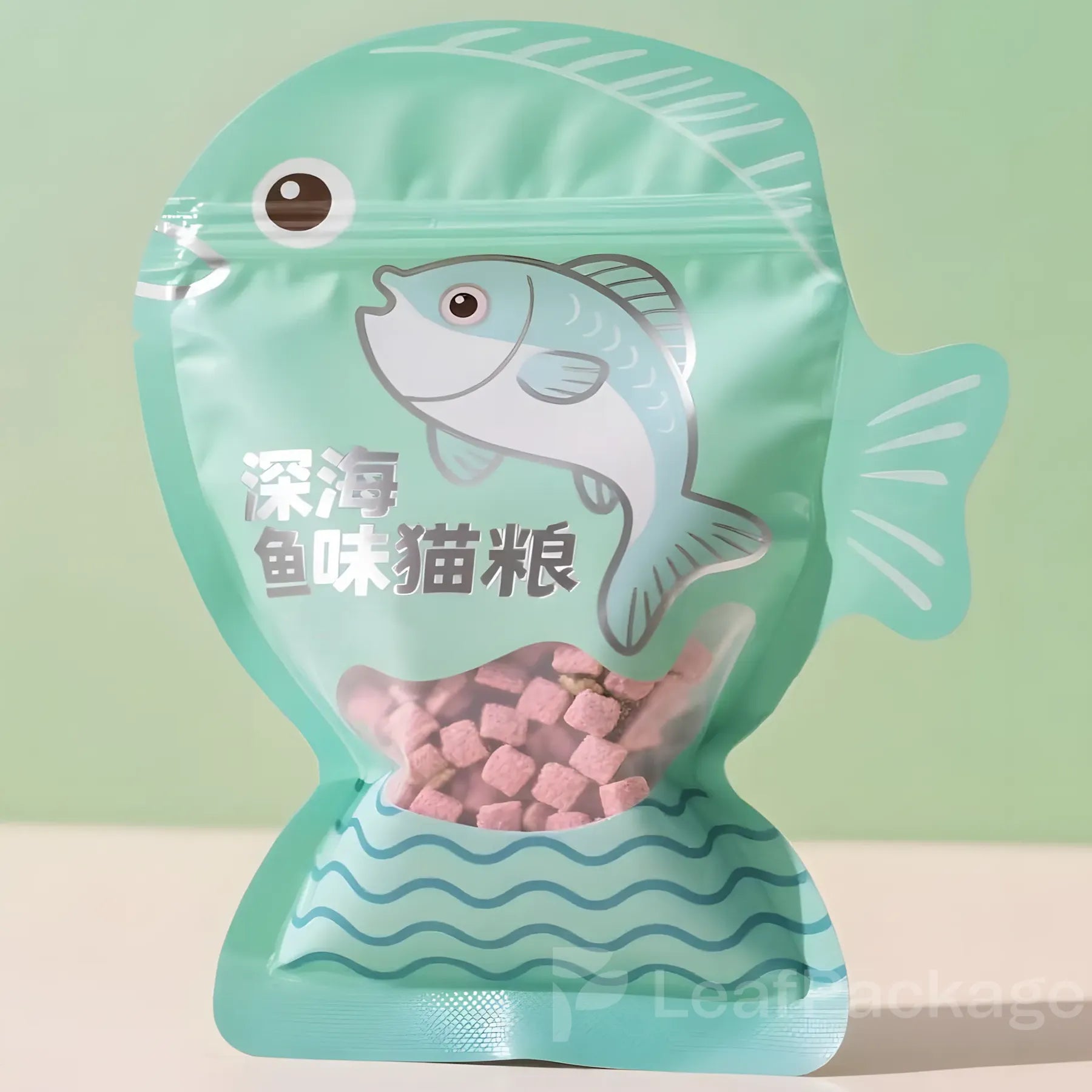 Eco-friendly custom shaped pet food packaging bags designed for small businesses. Support low MOQ, personalized printing, and innovative designs for unique branding.