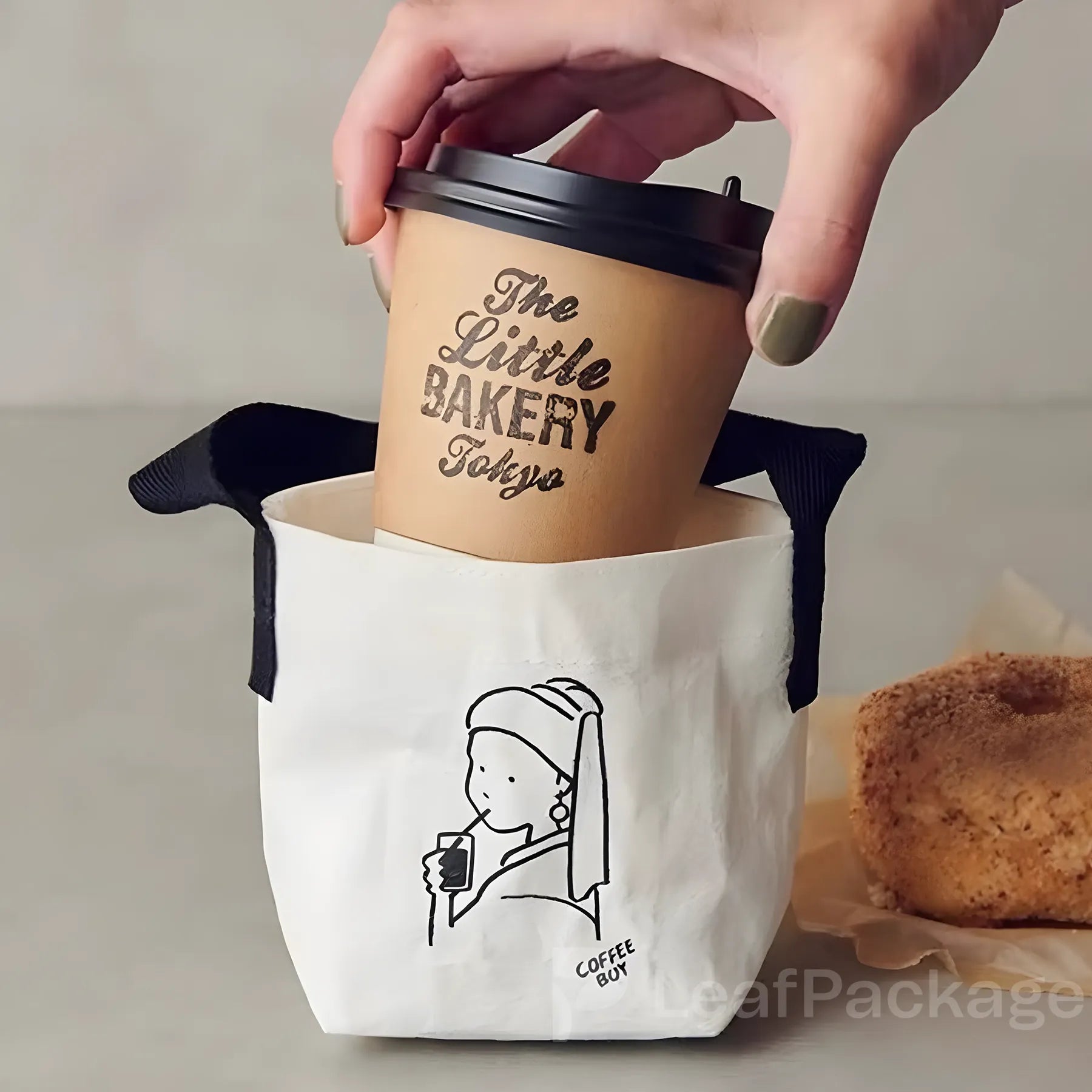 Eco-friendly Tyvek coffee bags with handles, lightweight yet durable, waterproof, and fully customizable in size, print, and logo. Perfect for takeaway drinks.