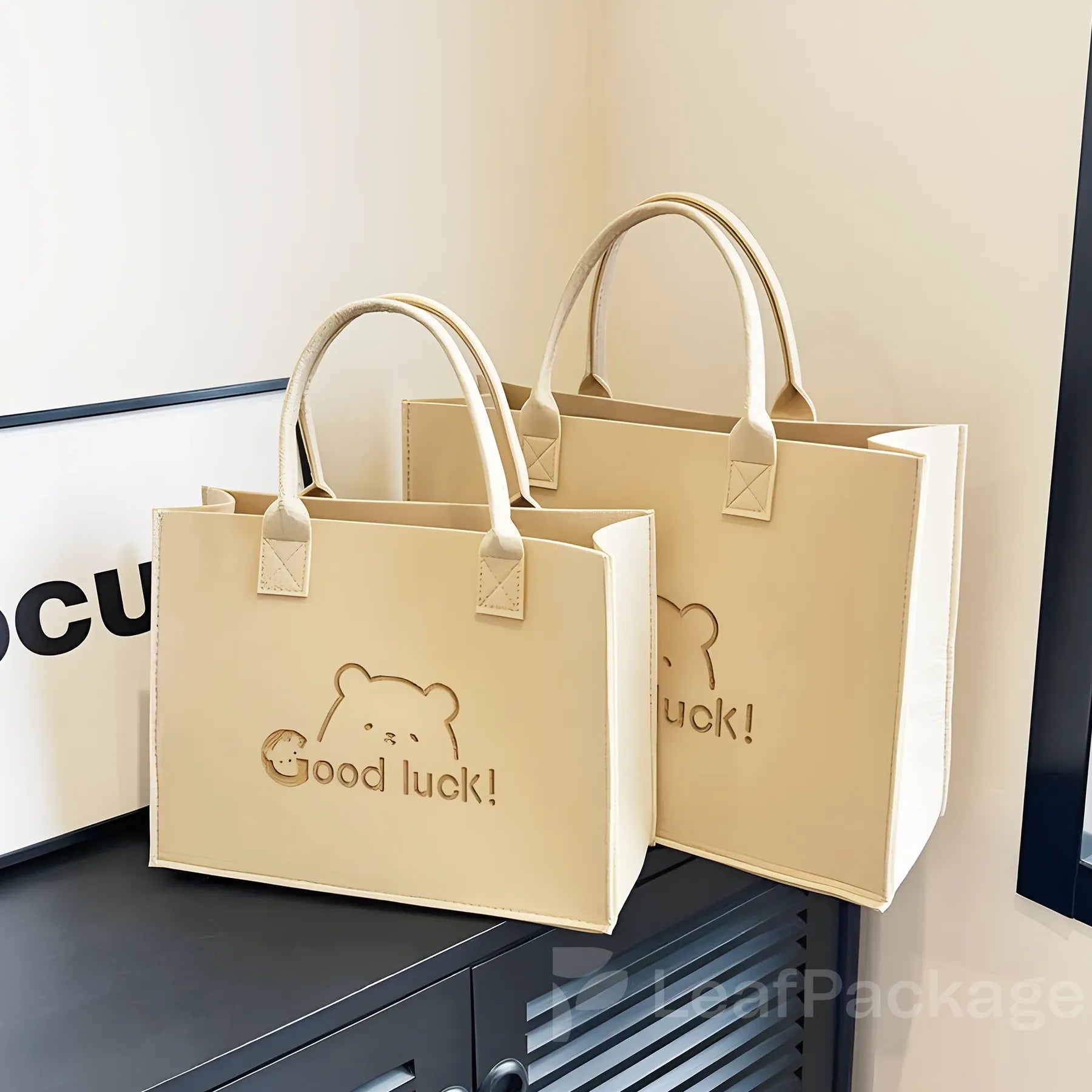 Our personalized felt handbags combine softness, durability, and modern eco design. Available in multiple sizes with logo or pattern printing, they’re perfect for daily use, boutique packaging, or brand promotion. Ideal for small businesses seeking stylish, custom felt tote bags in small batches — sustainable, practical, and beautifully crafted by Leafpackage.