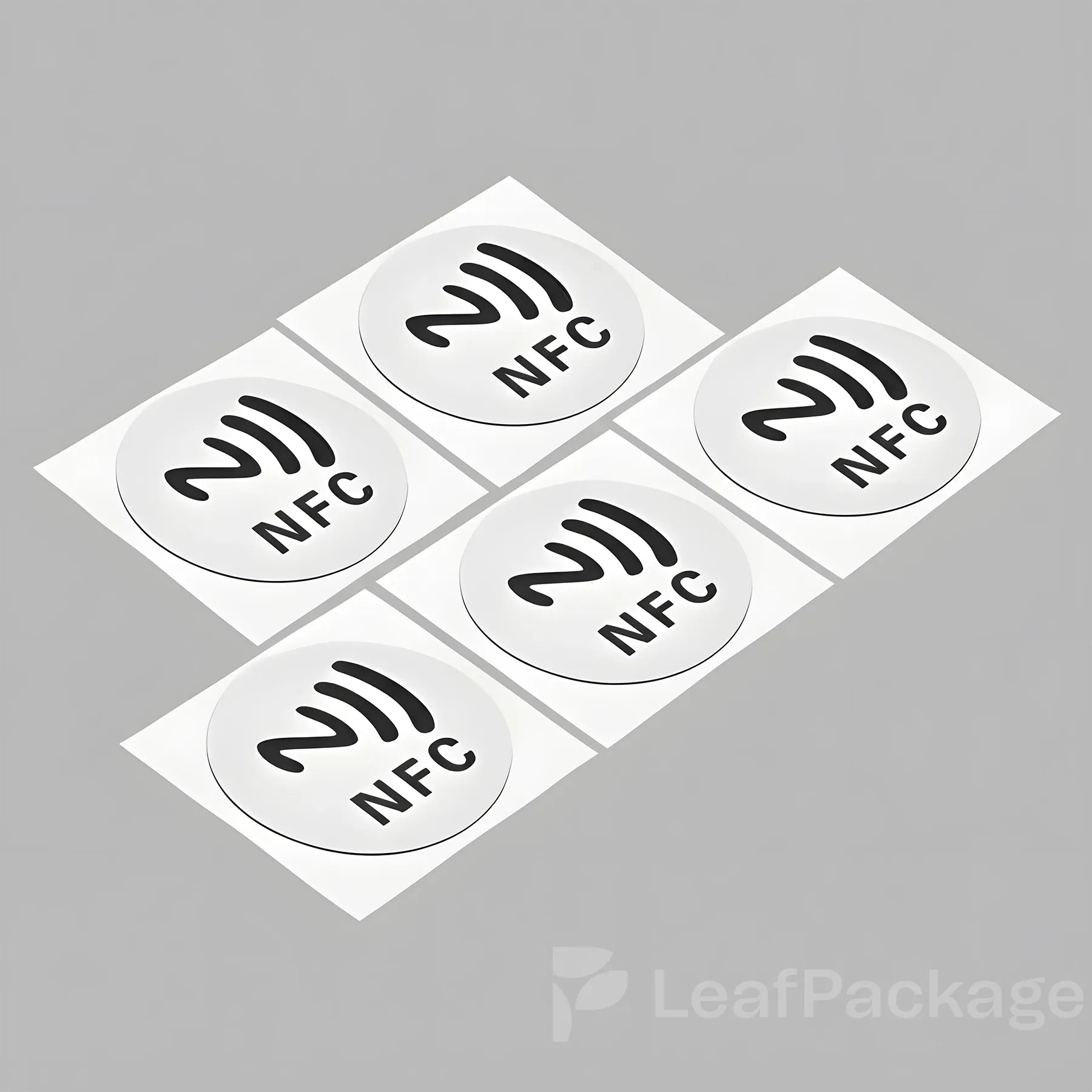 Personalized Secure NFC Labels, single-sided print, recyclable, perfect for anti-counterfeit verification and boosting brand trust. Round or square shapes available.